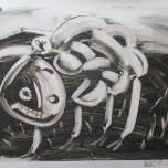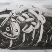 monotypien aus allen schaffensphasen: eins von 100 hausschafen aus "wir sind das volk".